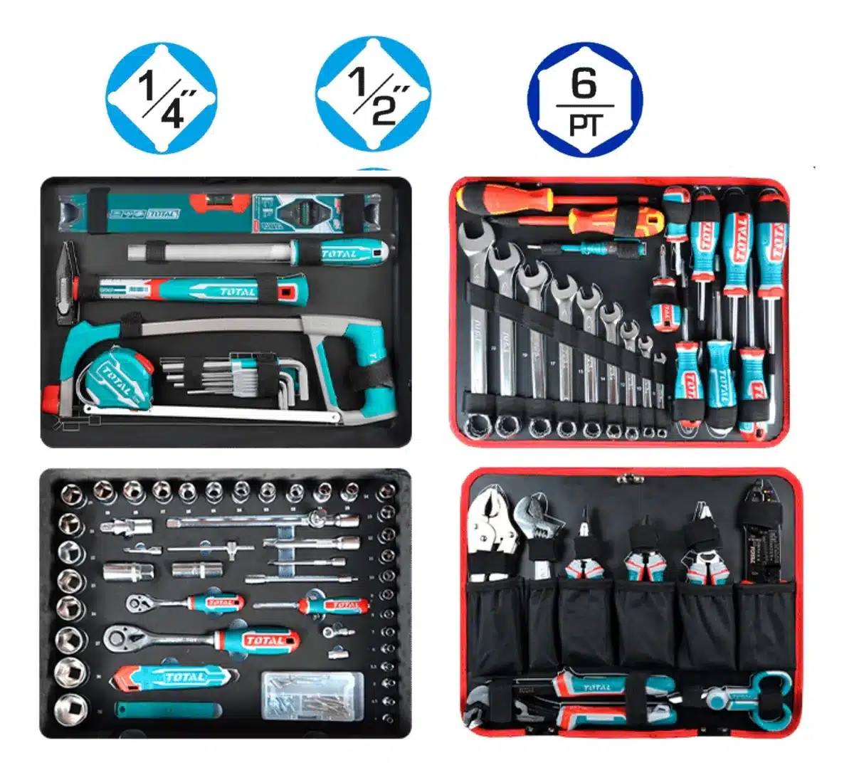 La maleta de aluminio con 147 herramientas industriales de la marca Total es la solución ideal para profesionales y aficionados al bricolaje que buscan calidad y durabilidad. Su diseño robusto y ligero permite un fácil transporte, gracias a sus ruedas, lo que la convierte en una opción práctica para llevar a cualquier lugar.