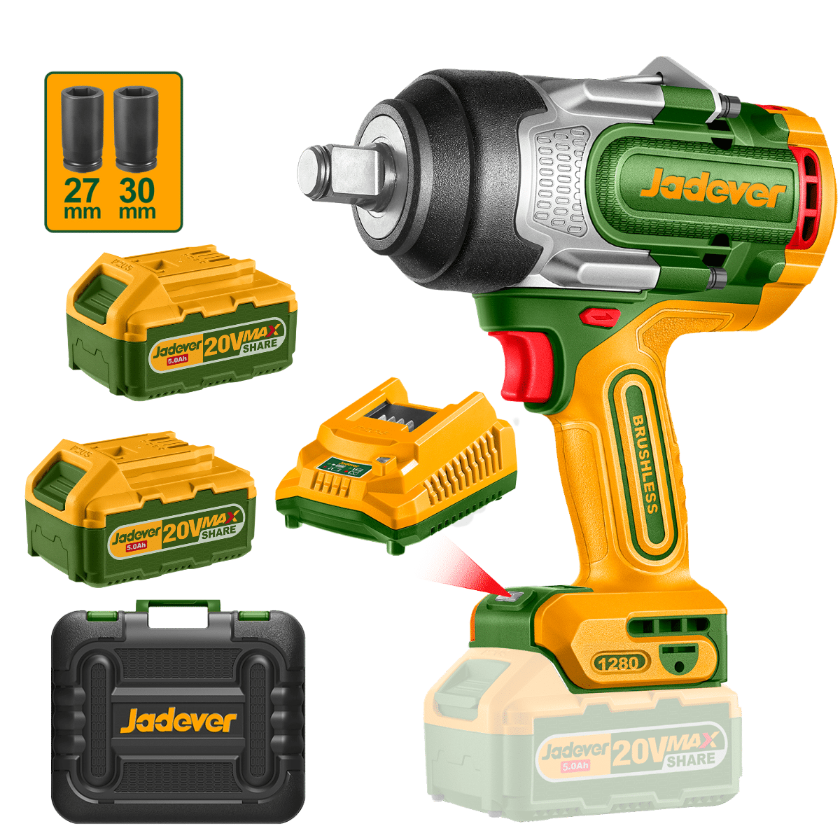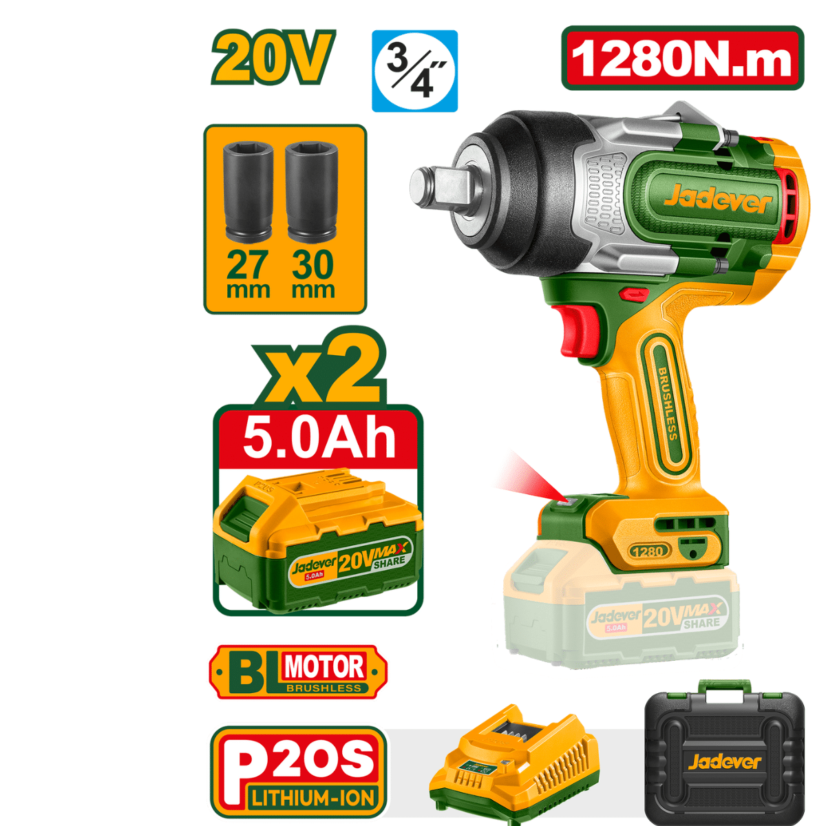 LLAVE/DESTORNILLADOR DE IMPACTO 20V 3/4″ 1280NM 2X5.0AH MALETIN – JDCD1B128