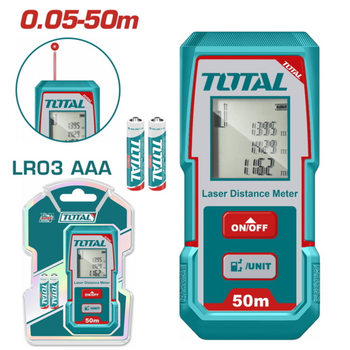 Rango de medición: 0,05-50 m Precisión de medición: ±2,0 mm Tipo de láser: 635 nm, <1 mW, clase 2 Función: medición simple/medición continua/medición indirecta/medición de área/volumen | medición/medición simple del teorema de Pitágoras/medición doble de Pitágoras/medición doble de área Batería: 2 pilas AAA de 1,5 V Temperatura de funcionamiento: 0 °C ~ +50 °C Embalado en blíster doble