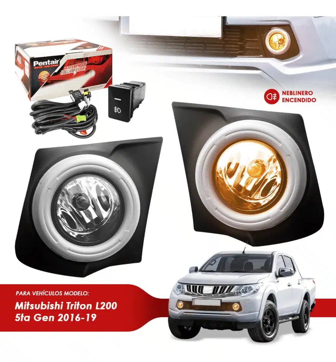 Mejora la visibilidad y seguridad de tu Mitsubishi Triton L200 5ta Generación con el Neblinero Set Completo de Pentair. Este producto está diseñado específicamente para autos y camionetas, ofreciendo una solución eficiente y elegante para la iluminación de tu vehículo. Con un diseño en color negro, se integra perfectamente con la estética de tu Triton, realzando su apariencia.