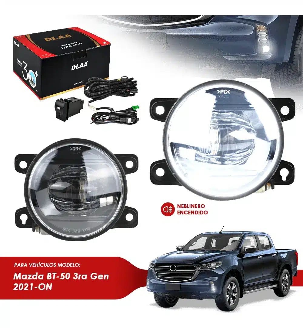 Mejora la visibilidad y seguridad de tu Mazda BT-50 de tercera generación con el Neblinero Set Completo LED de Dlaa. Diseñado específicamente para modelos 2021 en adelante, este producto ofrece una iluminación potente y eficiente, ideal para condiciones de baja visibilidad. Su tecnología LED garantiza un consumo energético reducido y una larga vida útil, asegurando que tu vehículo esté siempre preparado para cualquier situación.