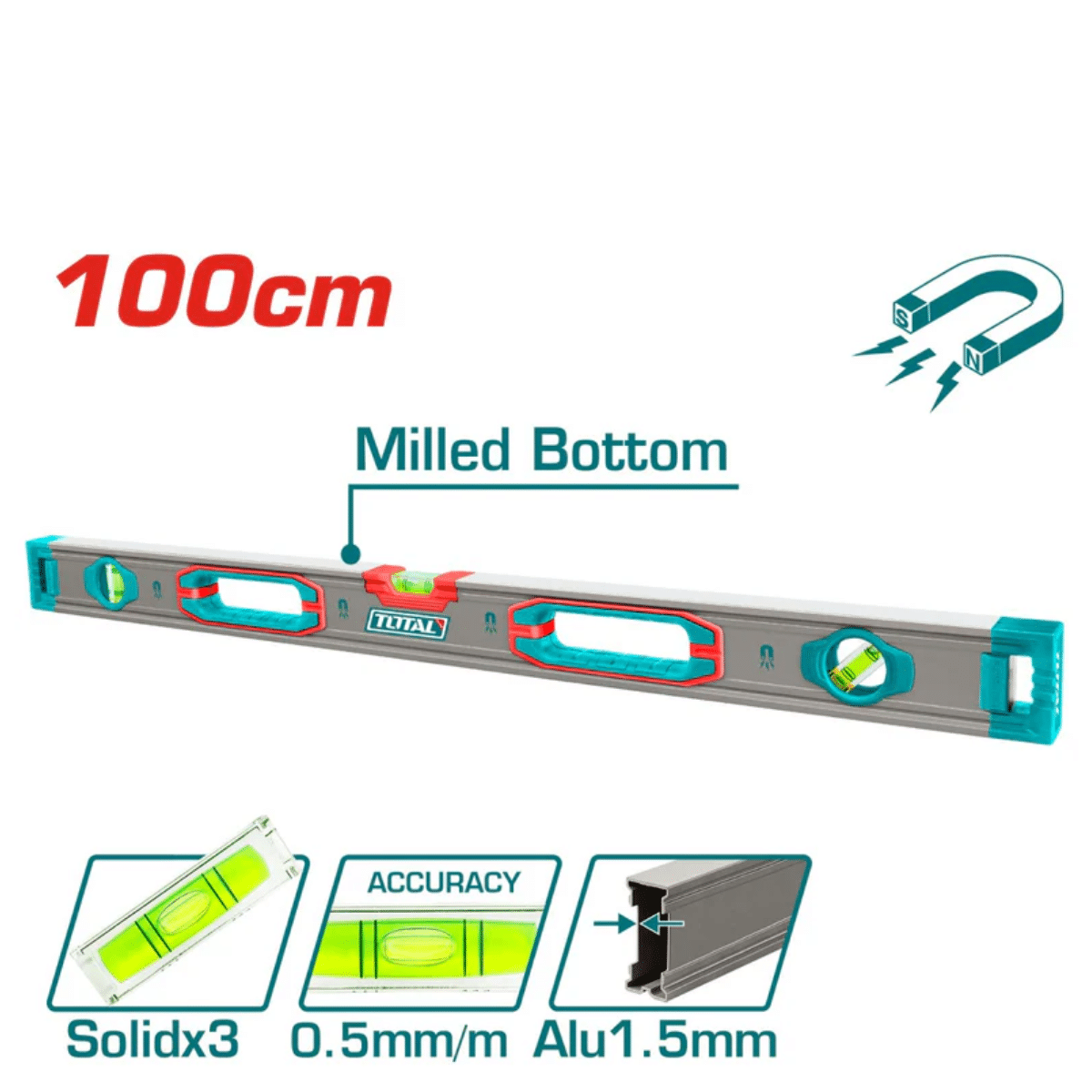 Nivel de burbuja magnético de 100 cm.