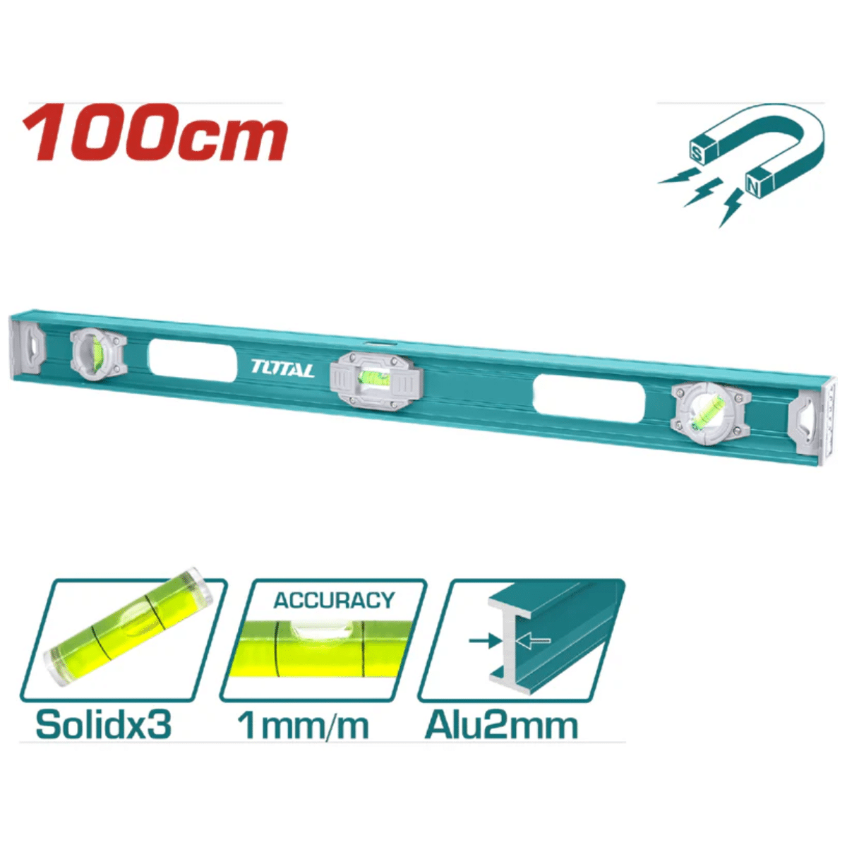 Características | 100cm. Aluminio. Espesor: 2mm. Con imán. |