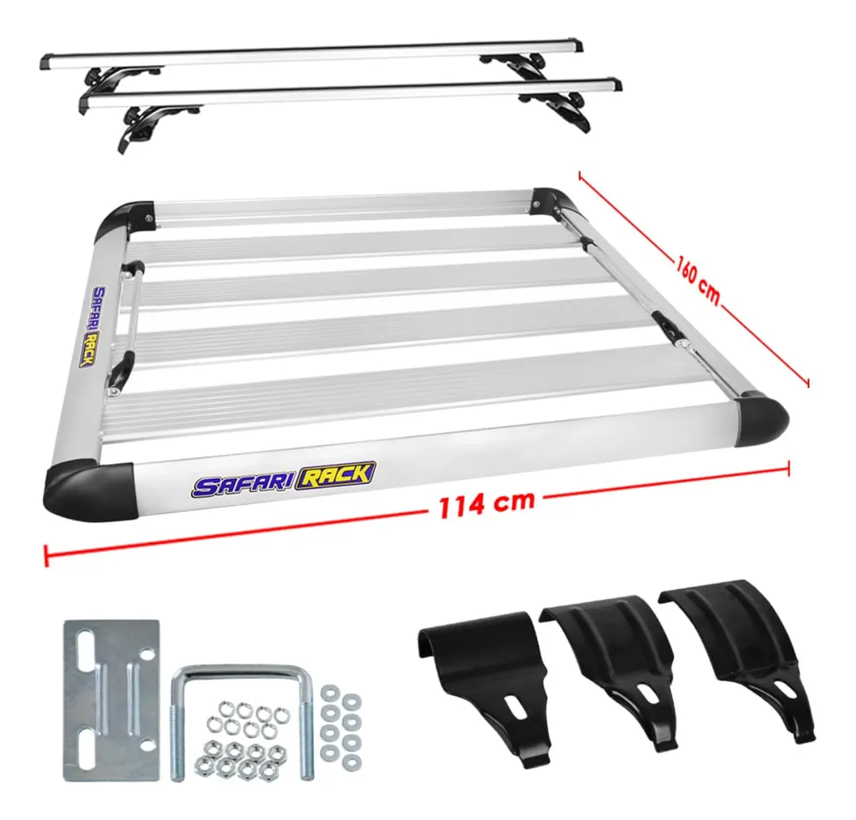 La Parrilla de Aluminio Clásica con Barra SAFARI P58025F SL es la solución ideal para quienes buscan maximizar el espacio de carga en su auto o camioneta. Con unas dimensiones de 160 cm de largo, 112 cm de ancho y 10 cm de altura, este producto combina funcionalidad y resistencia, permitiendo transportar hasta 50 kg de manera segura.
