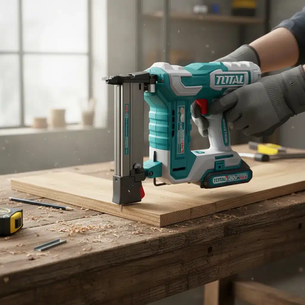 La pistola de grapas 20V K10-K40 3G/S de la marca Total es la herramienta ideal para quienes buscan eficiencia y comodidad en sus proyectos de engrampado. Con un diseño ergonómico en color turquesa, esta engrampadora se adapta perfectamente a la mano, permitiendo un uso prolongado sin fatiga. Su potente batería de 1X2.0AH garantiza un rendimiento excepcional, permitiendo realizar múltiples tareas sin interrupciones.