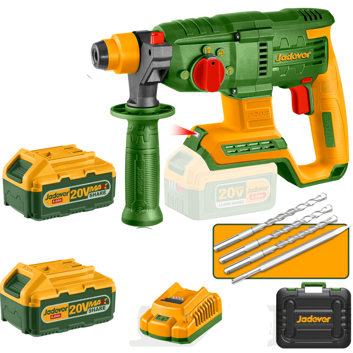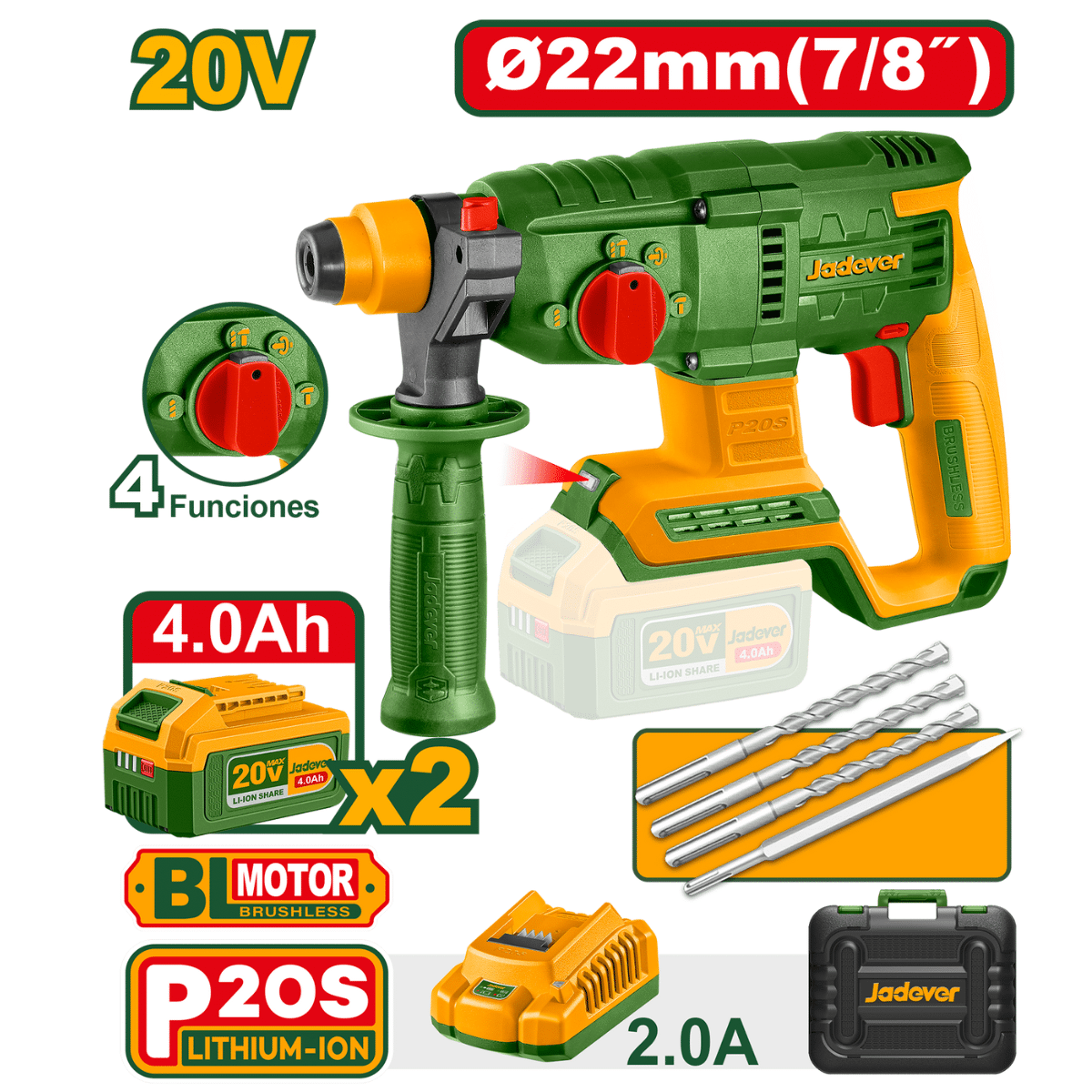 | Accesorios | 1000 clavos (35 mm) – 1 llave hexagonal – 1 batería de 20 V 2, 0 Ah (JDLBP520) – 1 cargador (JDFCP502) |