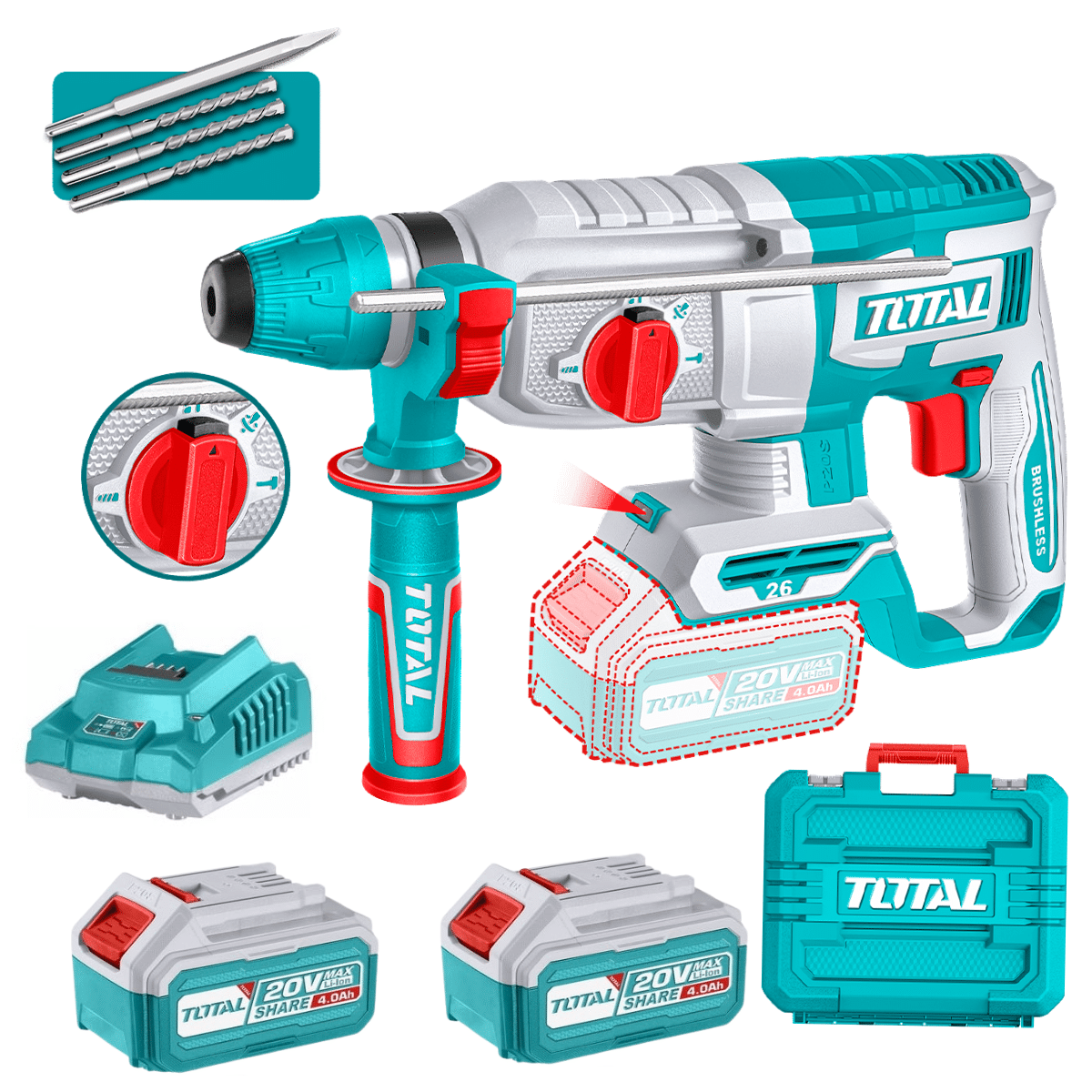 | Accesorio | 3Brocas – Cincel – 2Baterías (4.0 Ah) – Cargador |