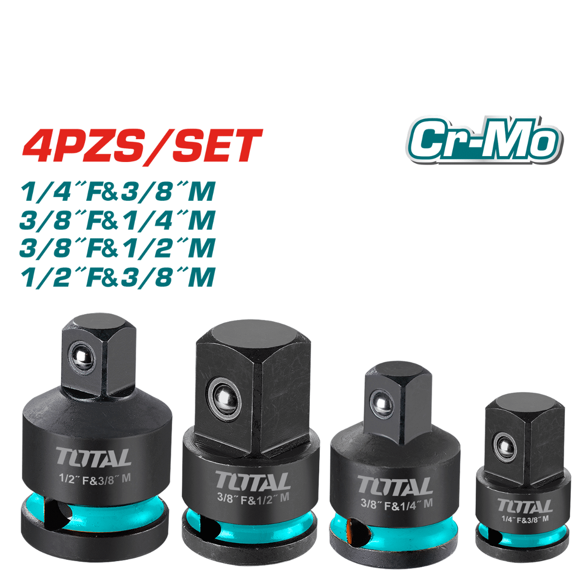 | Tamaño | 1/4"(F) y 3/8"(M), 3/8"(F) y 1/4"(M), 3/8"(F) y 1/2"(M), 1/2"(H) y 3/8"(M) |