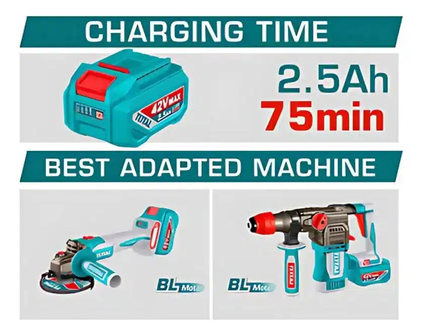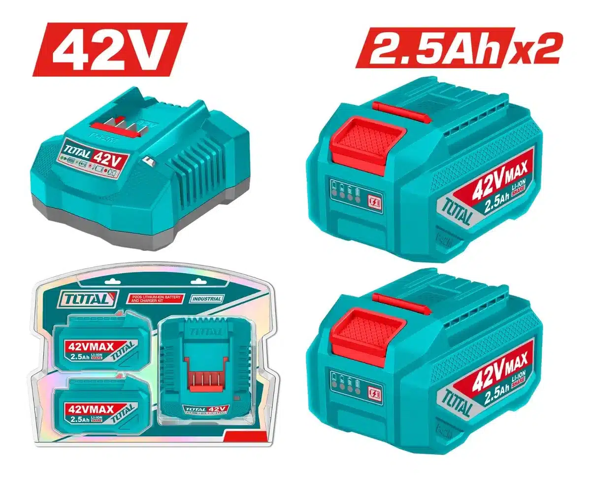 Invierte en la Batería Total TFBCPM25221 y transforma la manera en que trabajas. Su diseño compacto y ligero facilita su manejo, mientras que su compatibilidad con la línea 42V la convierte en una opción versátil para tus necesidades energéticas.