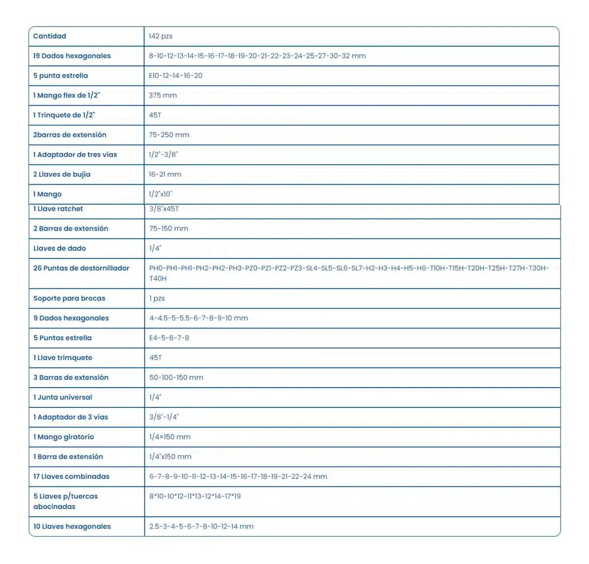 SET DE HERRAMIENTAS Y RACHET 1/2″ 142PIEZAS – THKTHP21426