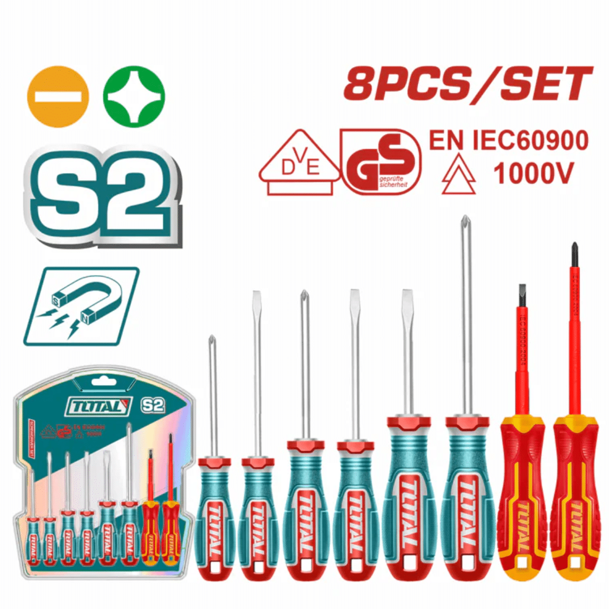 SET DESTORNILLADORES 8PCS S2 4XSL + 4XPH 75/100/150MM INC AISLADOS MAG – TKSDS0836