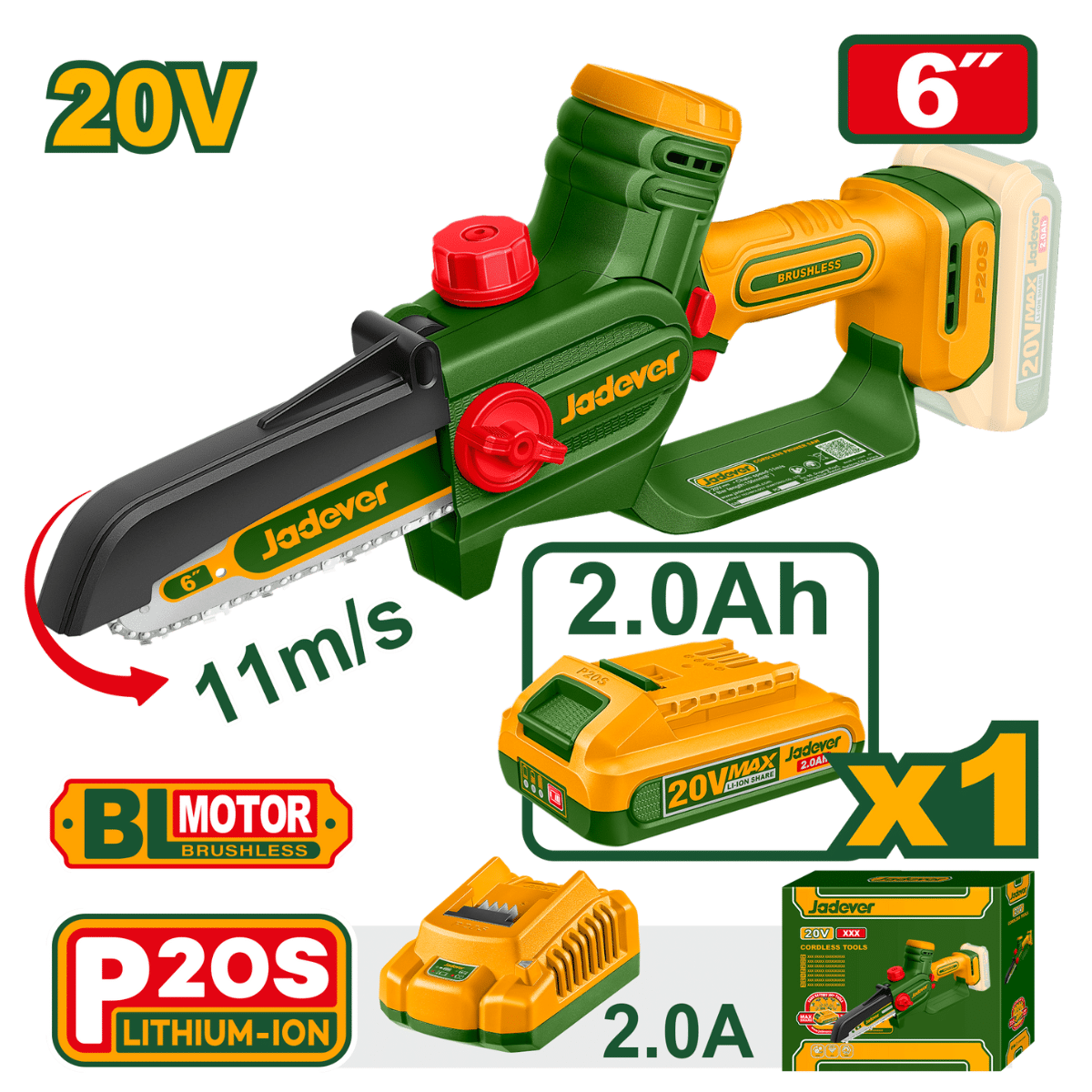 | Accesorio | Batería 2.0Ah – Cargador 2.0A – Espada de 6" – Llave – Cadena de 6" |