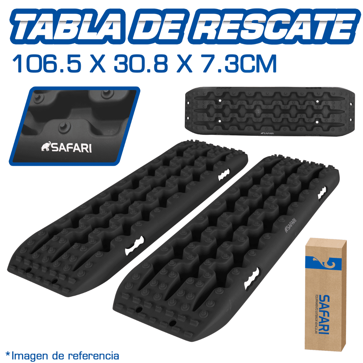 La tabla de rescate de la marca SAFARI es una herramienta esencial para la seguridad en carretera. Con unas dimensiones de 106.5 x 30.8 x 7.3 cm, este producto está diseñado para ser utilizado en autos y camionetas, ofreciendo una solución práctica y eficiente en situaciones de emergencia.