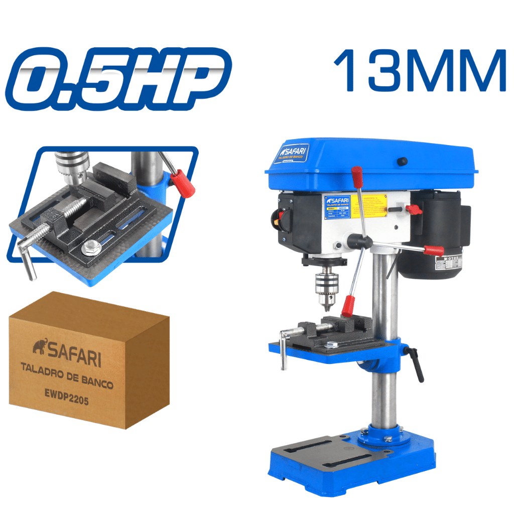 El Taladro Banco 13MM 220V 0.5HP STANDARD - EWDP2205 de la marca Safari es una herramienta esencial para quienes buscan precisión y potencia en sus proyectos de bricolaje o trabajos industriales. Con una capacidad máxima del mandril de 2 cm, este taladro permite realizar perforaciones en una variedad de materiales, garantizando resultados óptimos.