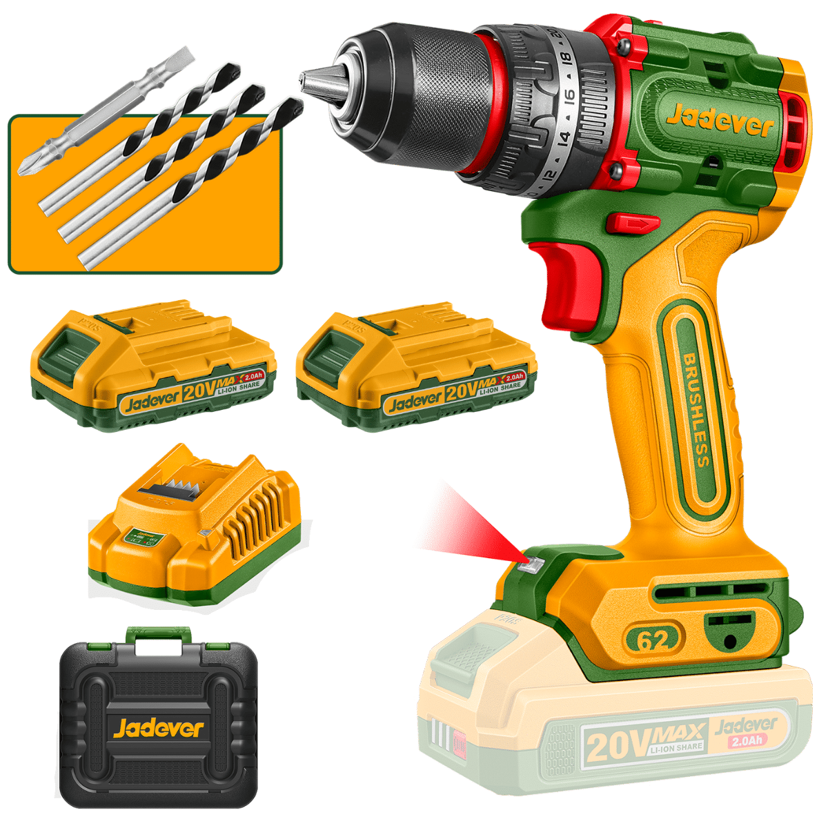 | Accesorio | Baterías 2×2.0Ah – Cargador 2.0A – 3 Brocas para concreto – Broca de doble vía |