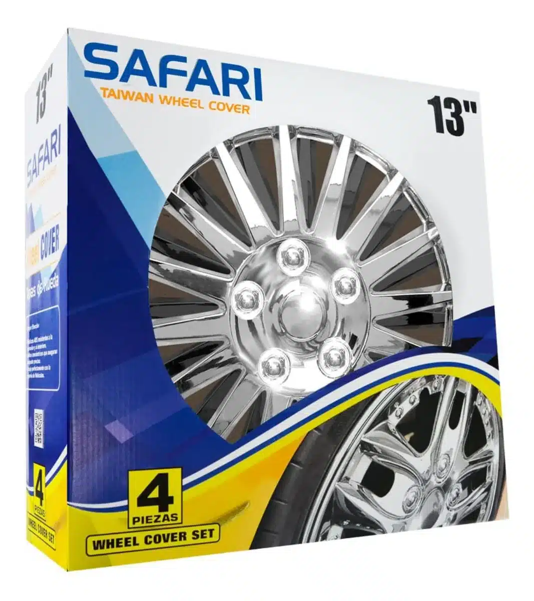 La tapa de rueda Safari - V071-CC-13 de 13 pulgadas es ideal para autos y camionetas. Fabricada en plástico resistente, esta tapa completa es asegurable para mayor seguridad en la carretera. Con un diseño cromado y de origen chino, le dará un toque de estilo a tu vehículo. Con un diámetro de 13 pulgadas, se adapta perfectamente a tus ruedas. Asegura la protección y el estilo de tus ruedas con la tapa de rueda Safari.