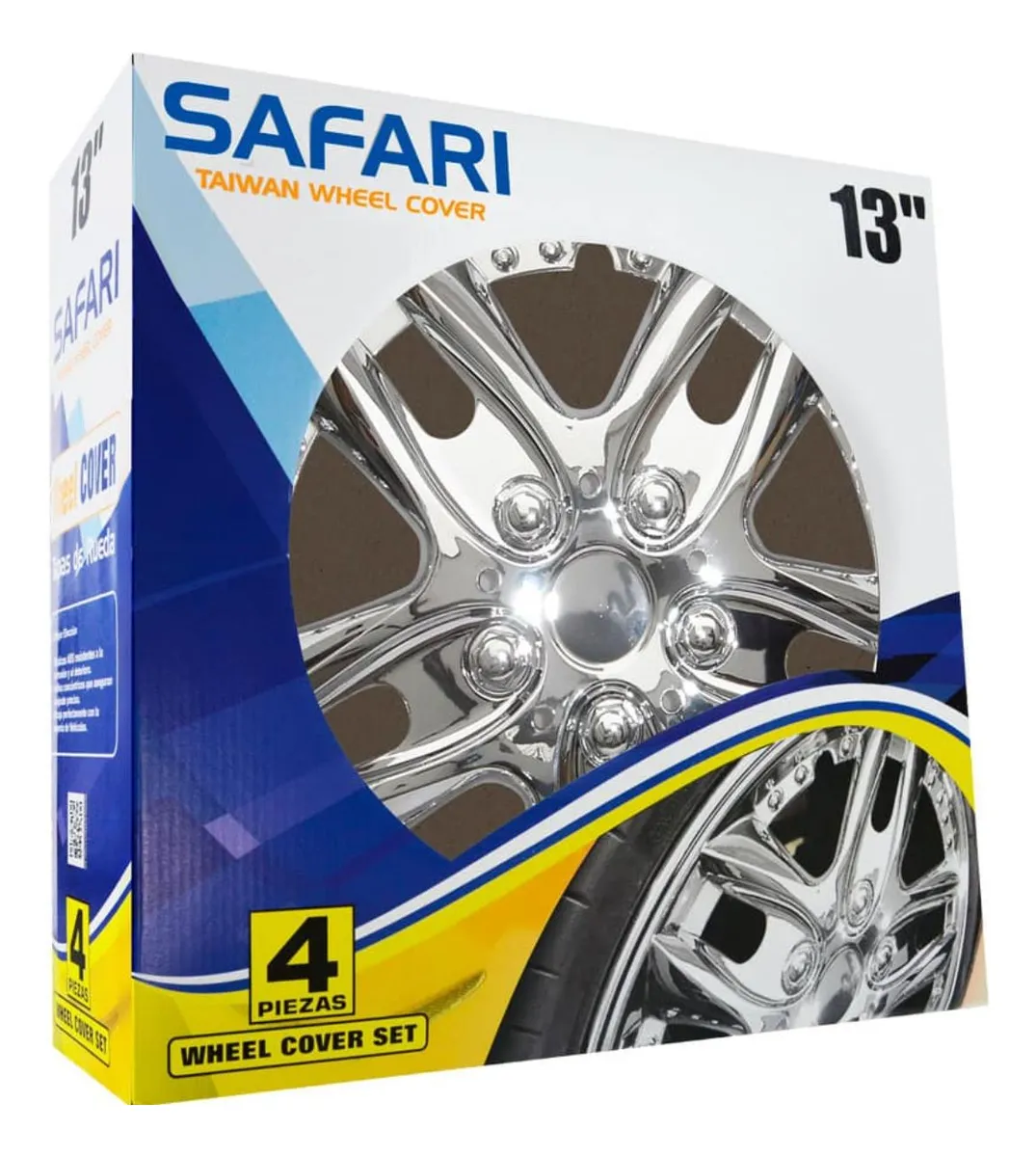La tapa de rueda Safari - V081-CC-13 de 13 pulgadas es ideal para autos y camionetas. Fabricada en plástico resistente, esta tapa completa es asegurable para mayor seguridad en la carretera. Con un diseño cromado y de origen chino, le dará un toque de estilo a tu vehículo. Con un diámetro de 13 pulgadas, se adapta perfectamente a tus ruedas. Asegura la protección y el estilo de tus ruedas con la tapa de rueda Safari.