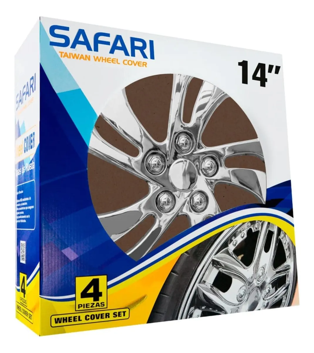 Las Tapas de Rueda 14 Pulgadas Cromado V076-cc-14 de la marca Safari son ideales para autos y camionetas. Fabricadas en plástico de alta calidad, estas tapas completas son asegurables y vienen en un set de 4 piezas. Con un diámetro de 14 pulgadas, le darán un toque de estilo a tu vehículo. Procedentes de China, ofrecen un diseño moderno y duradero para proteger tus ruedas con elegancia.