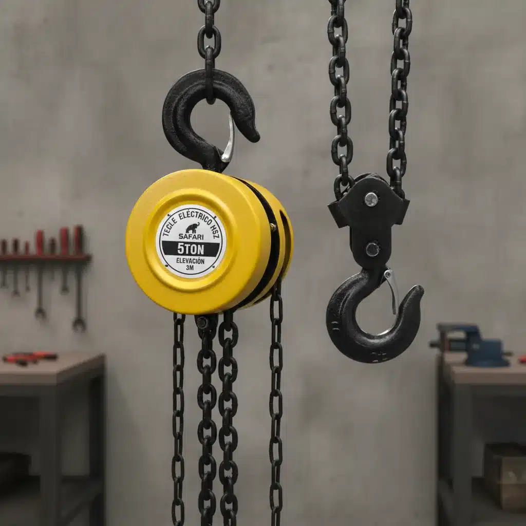 El tecle de cadena HSC-5 de la marca Safari es una herramienta esencial para quienes requieren un sistema de elevación eficiente y seguro. Con una capacidad de carga de hasta 5 toneladas, este tecle es ideal para trabajos en construcción, talleres y aplicaciones industriales. Su diseño robusto y su color amarillo lo hacen fácilmente visible, garantizando una operación segura en cualquier entorno.