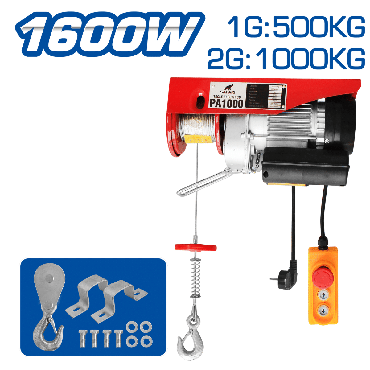 El Tecla Eléctrico Safari PA1000 es la solución ideal para quienes buscan eficiencia y potencia en sus proyectos de elevación. Con una capacidad de carga de hasta 1000 kg en su configuración de dos ganchos, este equipo es perfecto para tareas industriales y de construcción que requieren un manejo seguro y efectivo de materiales pesados.