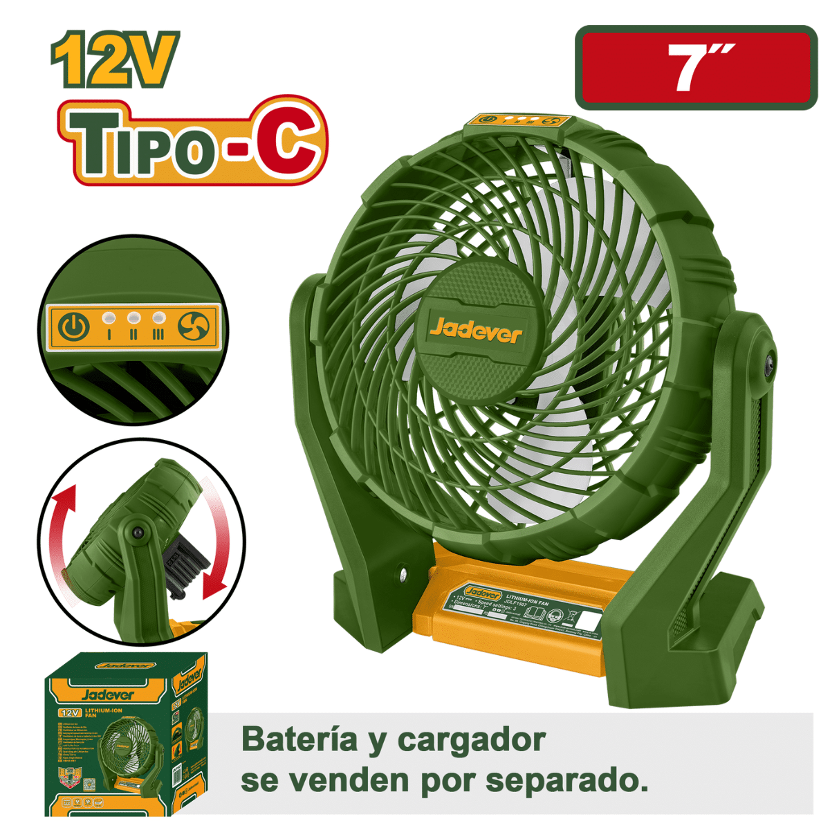 VENTILADOR 12V 7" ANGULO AJUSTABLE - JDLF1507